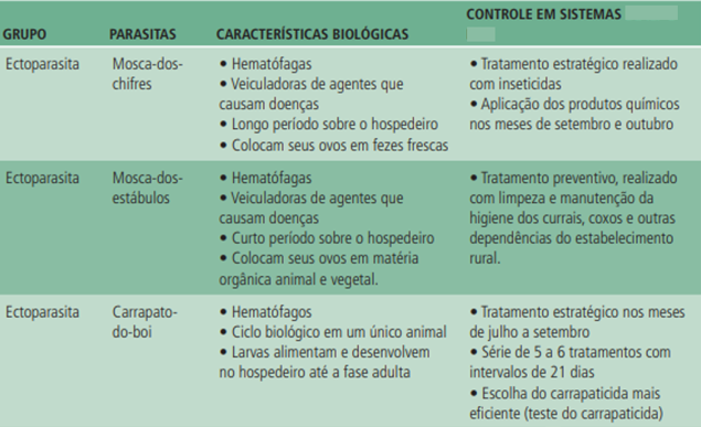 No caso dos parasitas, a imunização do rebanho é difícil, tornando-sum problema sanitário de grande impacto para a produção de gado de corte em todo o mundo, especialmente nos trópicos onde os sistemas tradicionais de produção são no pasto, corroborando para a rápida disseminação destes parasitas.Os prejuízos causados por esses ectoparasitas à bovinocultura de corte podem chegar a 20%, considerando a redução de peso dos bovinos, lesões na pele e anemia, aumentando os custos da produção indiretamente pela aquisição de produtos para combater os agentes causadores, além de afetar diretamente o bem-estar dos bovinos. Os estudos realizados sobre o ciclo de vida dos parasitas em sistemas tradicionais de produção, bem como os mecanismos de infecção/infestação, possibilitaram o desenvolvimento de técnicas eficientes de controle dos parasitas. Deste modo, baseando-se no conhecimento já existente sobre os parasitas em sistemas extensivos, algumas ações preventivas podem reduzir o número de ectoparasitas na propriedade.
